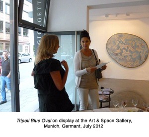 Art and Space Gallery, 'Eine Gemeinschaftsausstellung', Munich, Germany, the painting 'Tripoli Blue Oval', 13 - 28 July 2012, with Julius Kerscher, Mirjam Appelhof und Alfonso Sicilia Sobrino und Monika Humm, Barbara Bernrieder, Susanne Thiemann, Hans Engels and Hex |